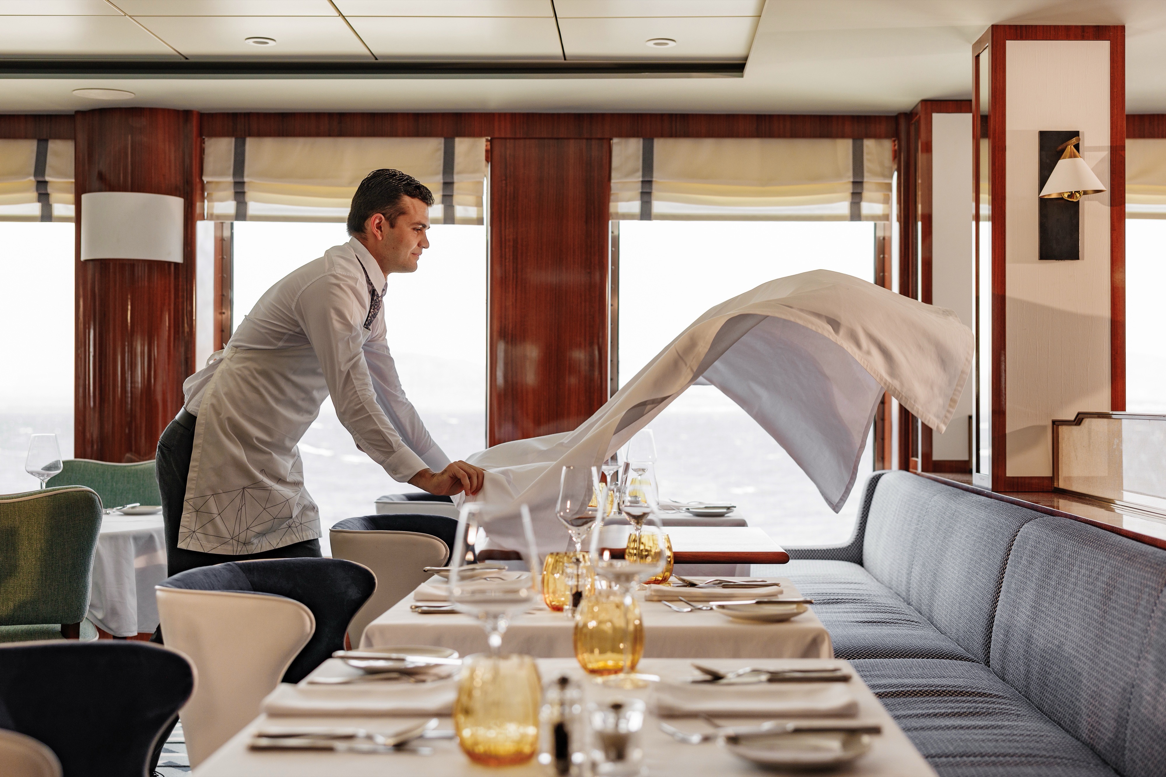 The hydro-jet propulsion systems reduce underwater noise, enabling the ships to cruise almost silently at speeds of up to 5 knots to protect surrounding marine life and encourage close encounters, while conserving the ecosystem. The yachts also avoid using anchors, instead employing a GPS-based Dynamic Positioning System to further safeguard the ocean floor’s delicate ecosystem.